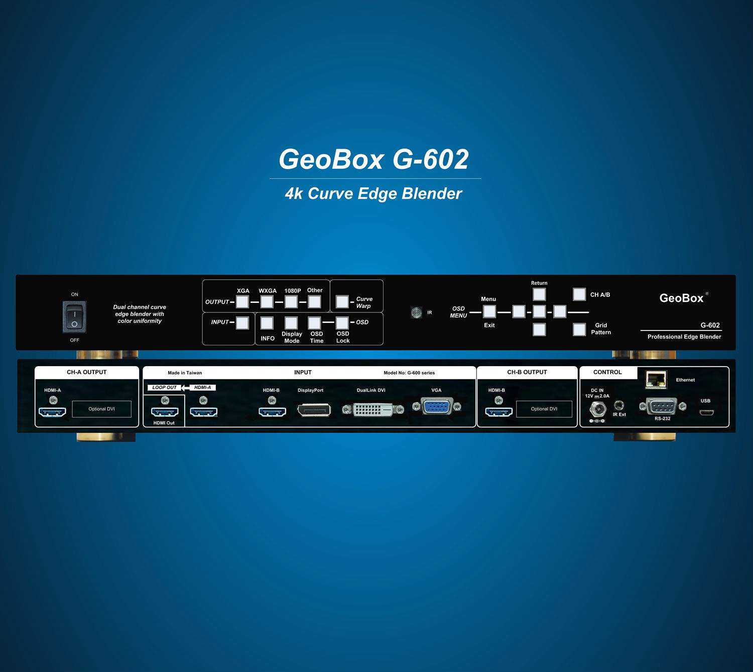 • Professional dual channel curved screen edge blending processor.