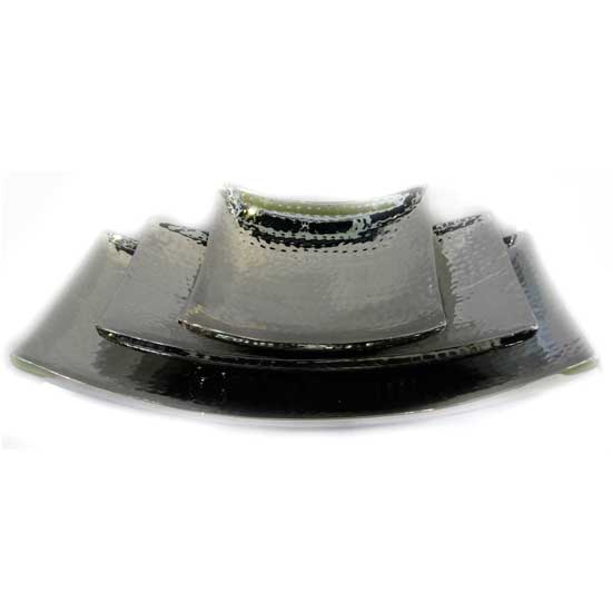 Highlighted is a series of trays that showcase beautiful curves. The quality stainless steel construction promises lasting durability. These delicate trays are perfect for holding fruits.