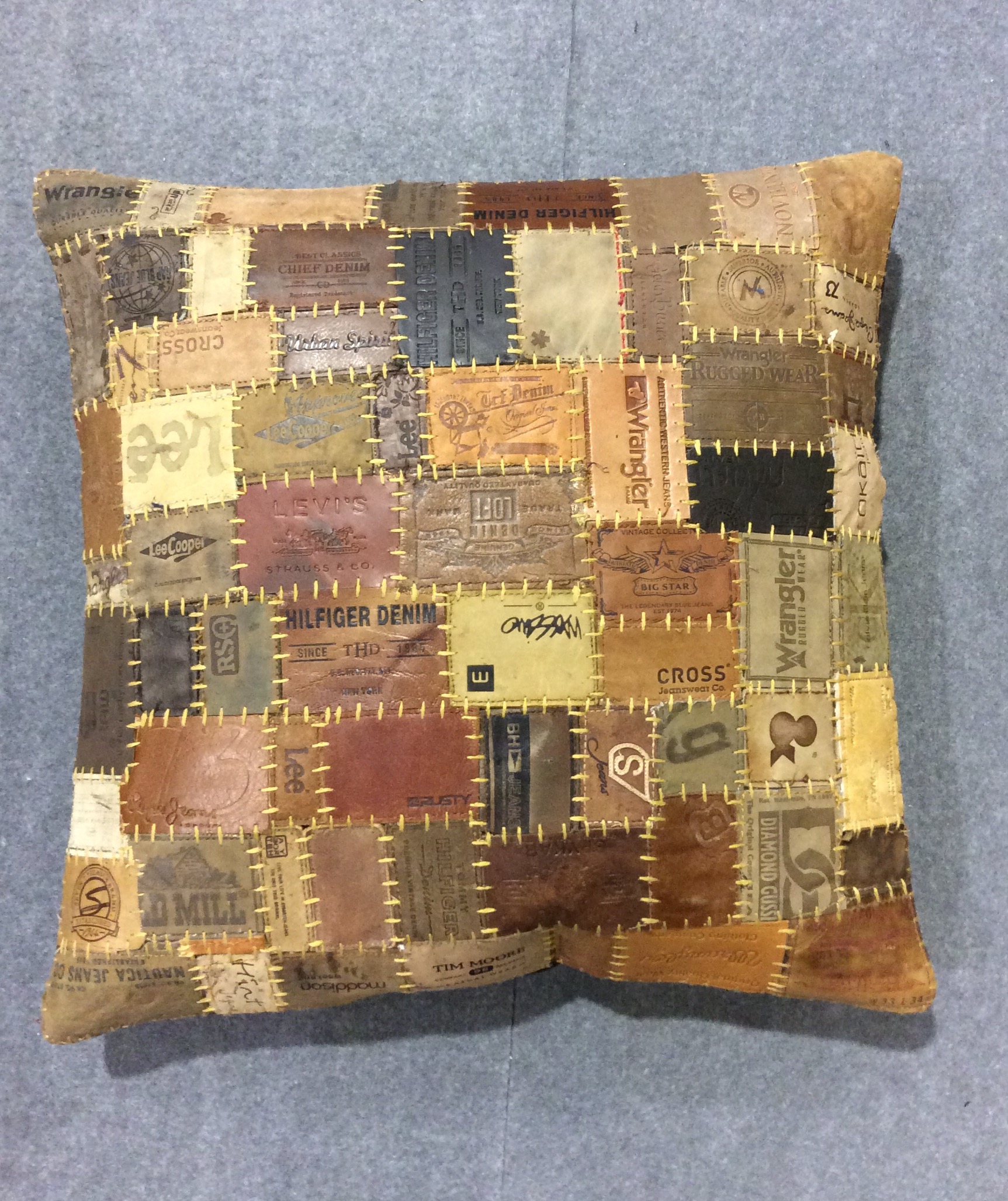"Check Royal" handmade cushion with recycled jeans cabels, originated in India