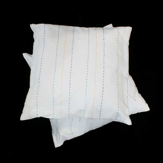This square-shaped white cushion cover is accented with dotted lines. Made of 100% cotton, the cushion cover feels soft and smooth. This minimalist cushion cover can easily blend into your home decor.