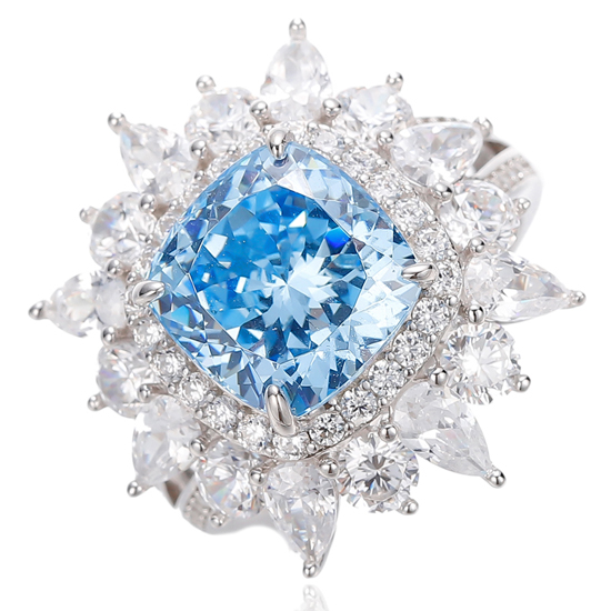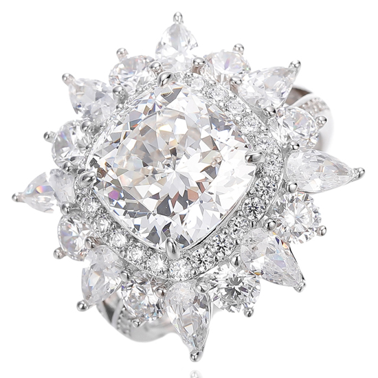 Cushion Diamond G Color And White Cubic Zircon Rhodium Silver Ring