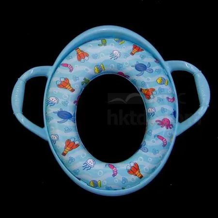 Displayed is a cushion potty seat especially made for infants and children. The potty can be fitted securely on adult toilet with handles for an easy grasp and added portability, which is best for transitional potty training for your kits.
