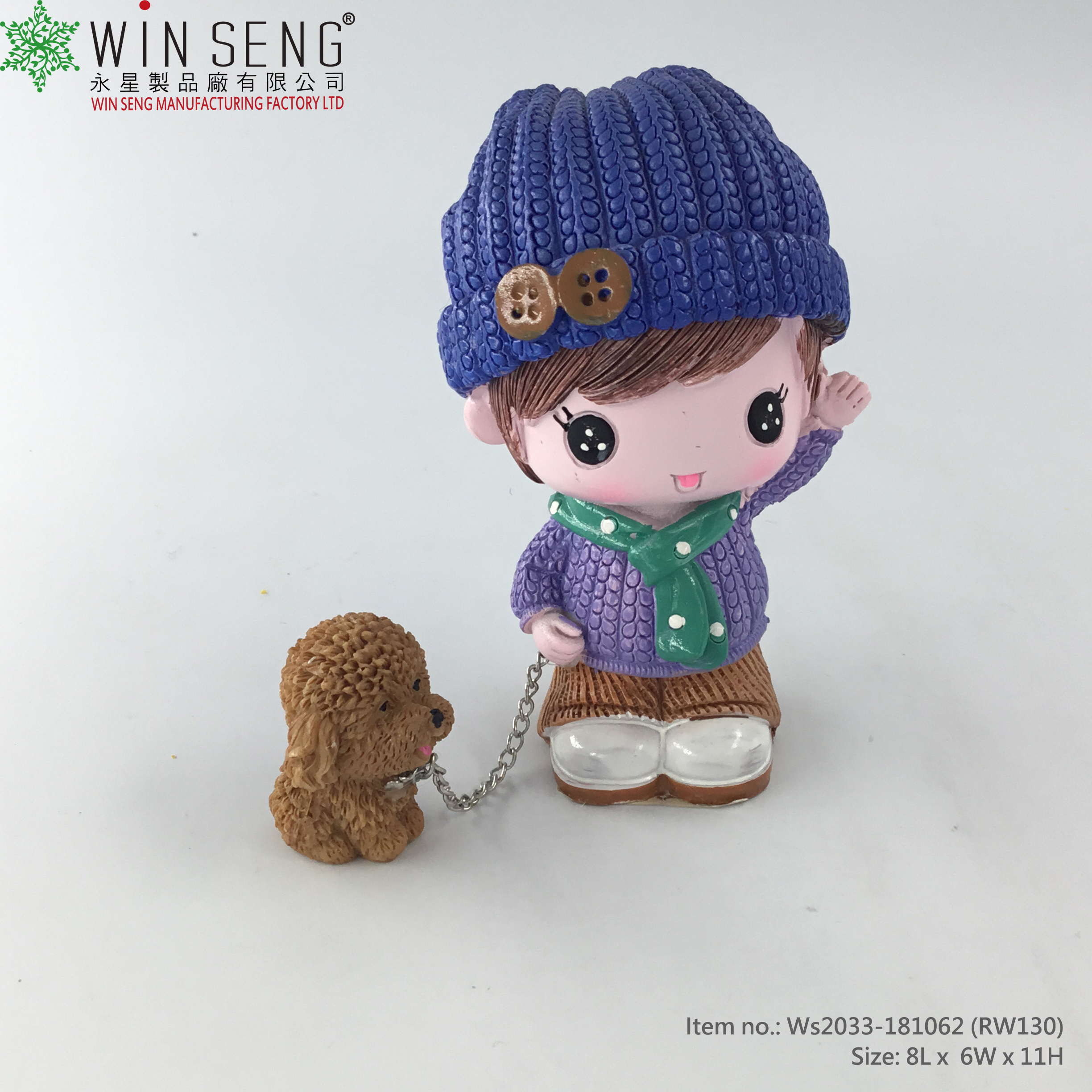 Item Name: Custom colour Polyresin Cartoon Boy with dog Decoration