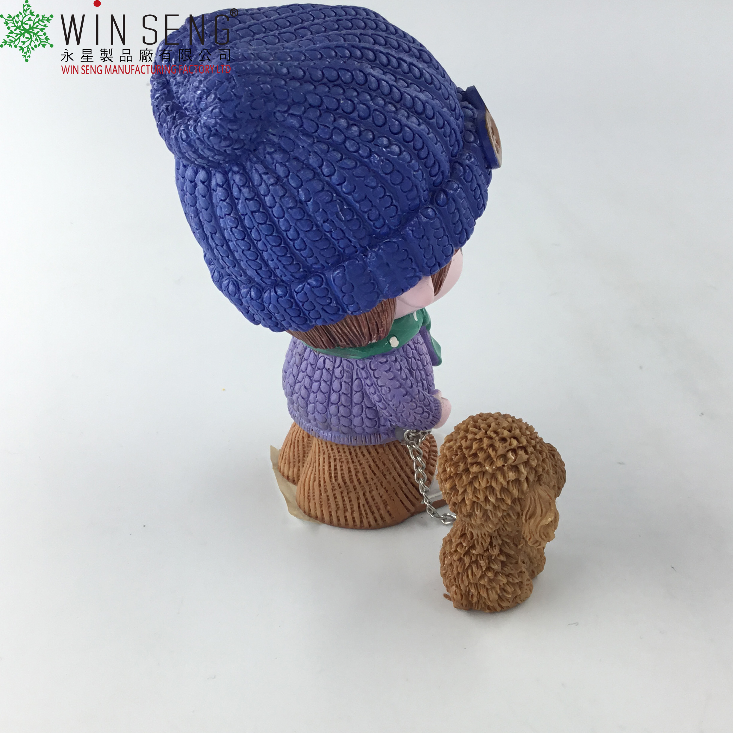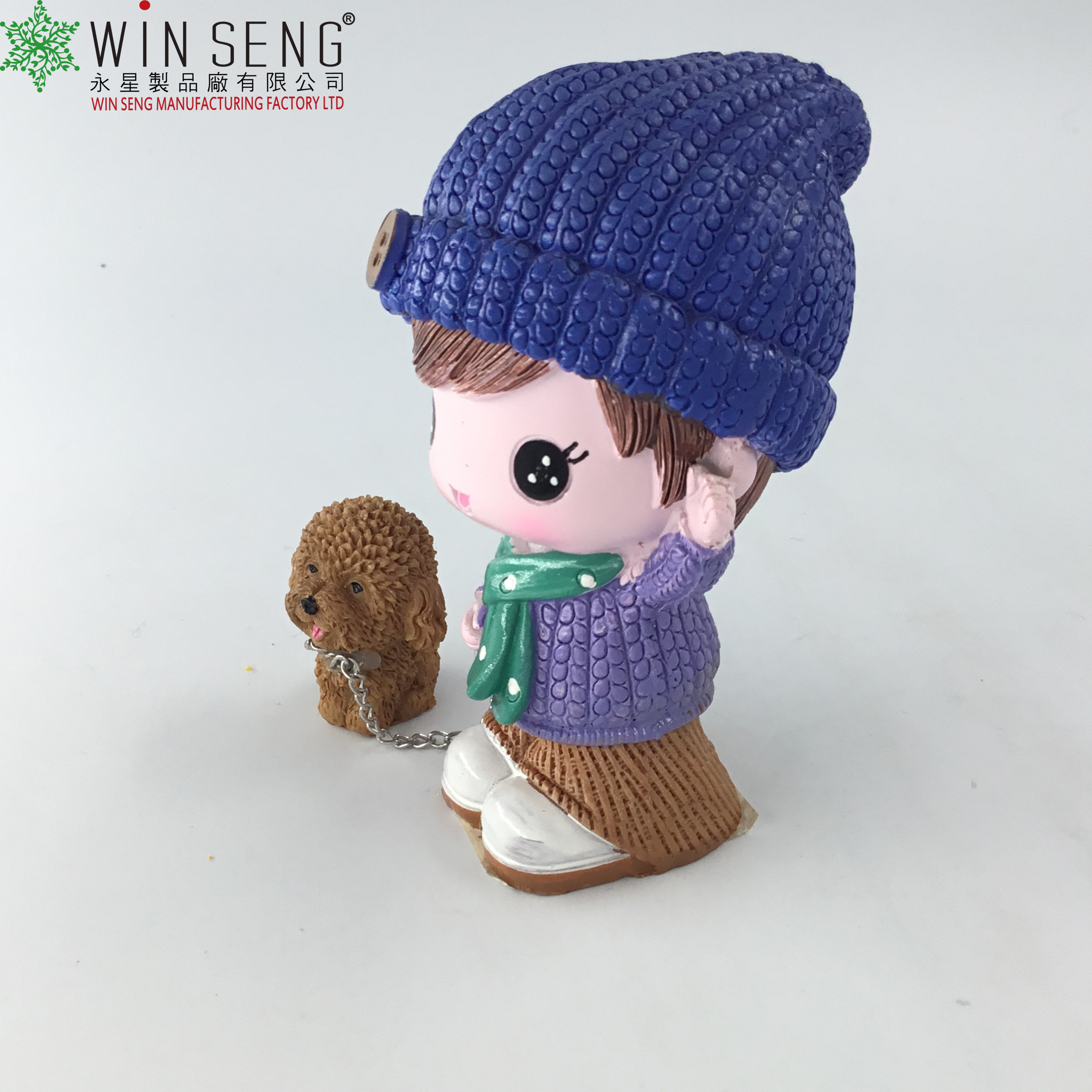 Custom Colour Logo Polyresin Cartoon Boy With Dog Decoration