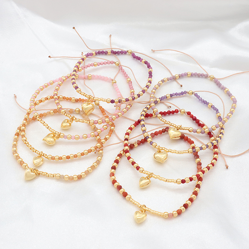 Custom Handmade Adjustable Macrame Gold Plated 925 Sterling Silver Heart Pendant Natural Stone Bead Bracelet