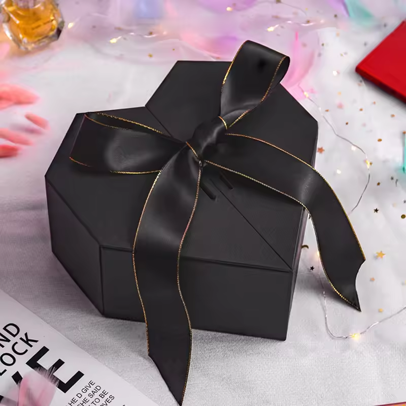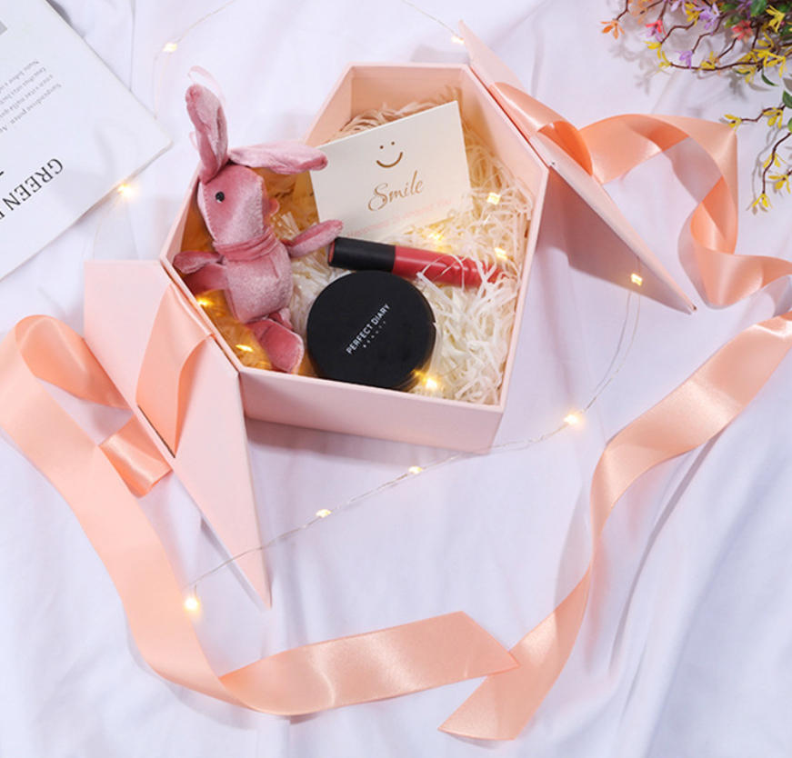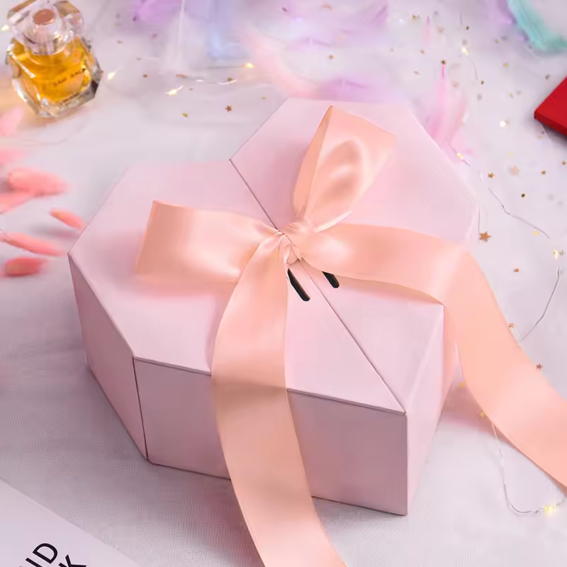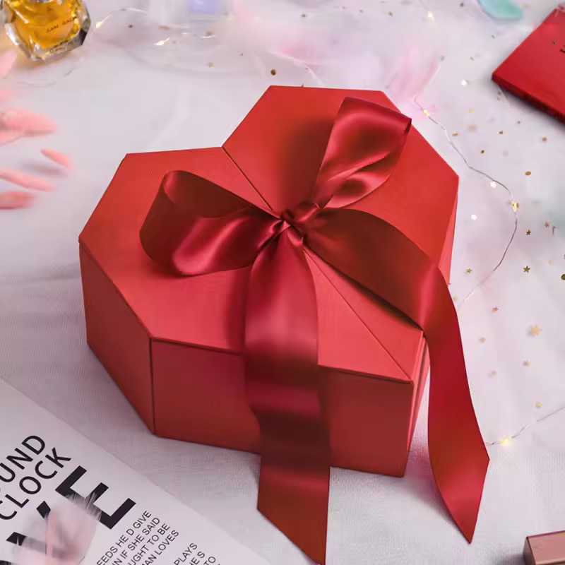 Custom Packaging Cardboard Heart-Shaped Carton Flip Top Ribbon Closure Set-Up Rigid Specialty Boxes