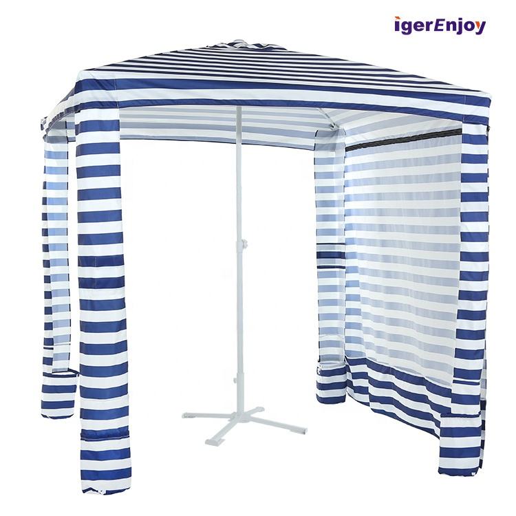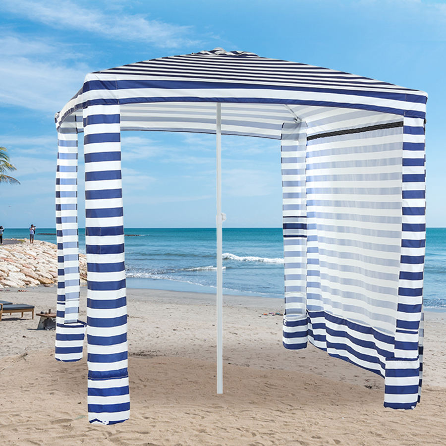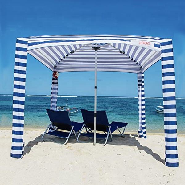 Custom Printing 6.5ft 7ft, Stripe Portable Windproof Uv50+ Beach Tent Sun Shelter Pop Up Outdoor Cool Beach Umbrella Cabanas/