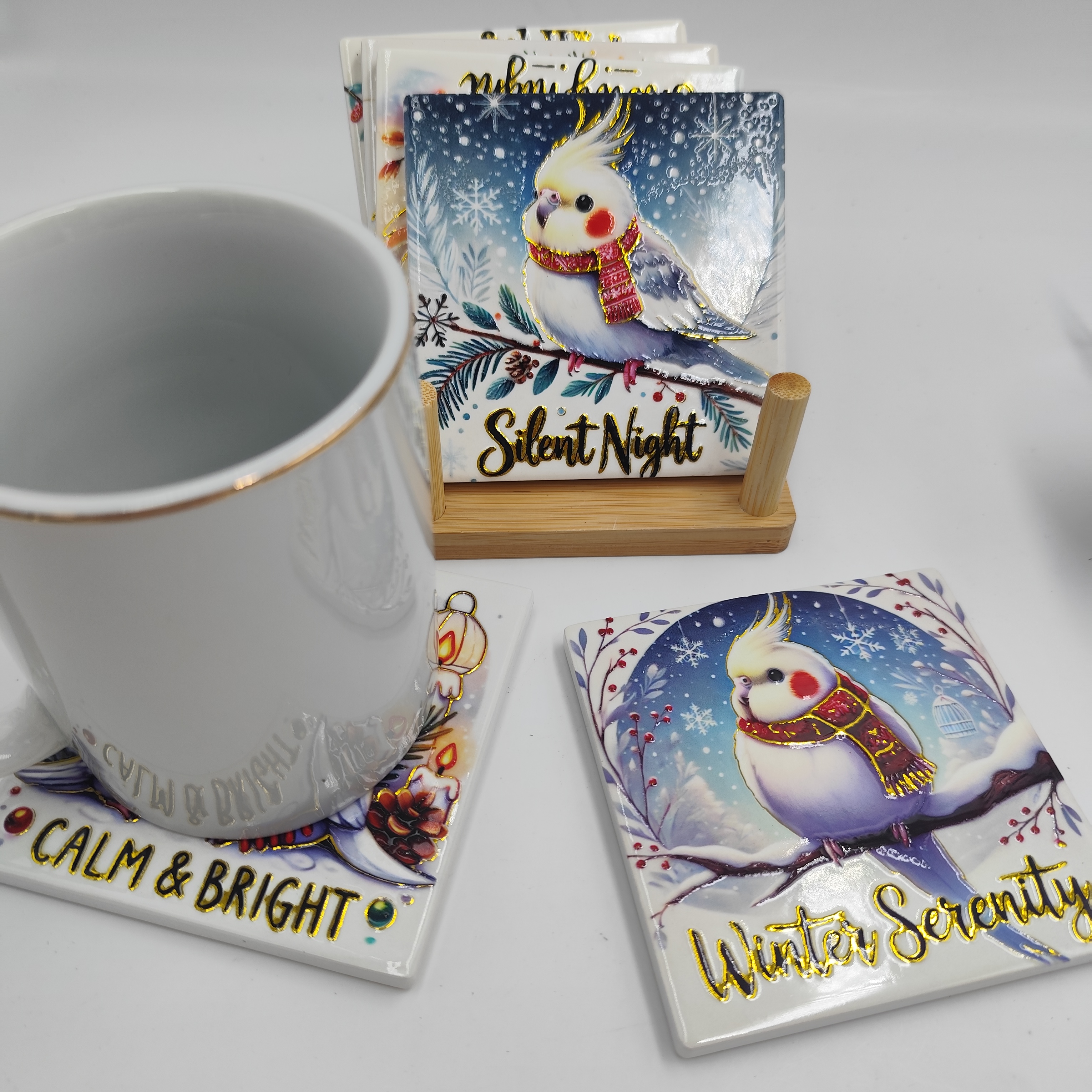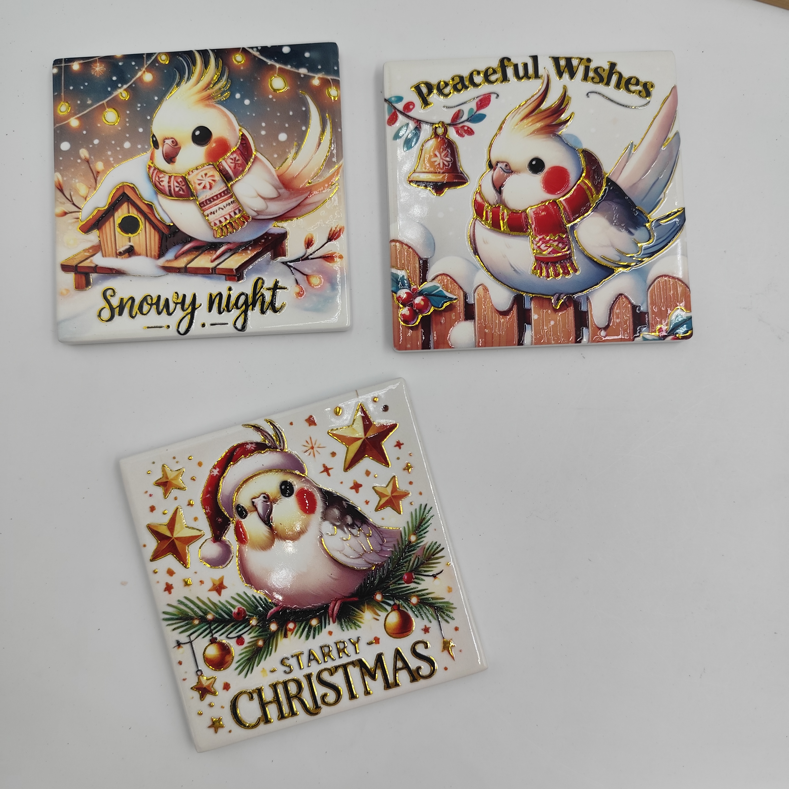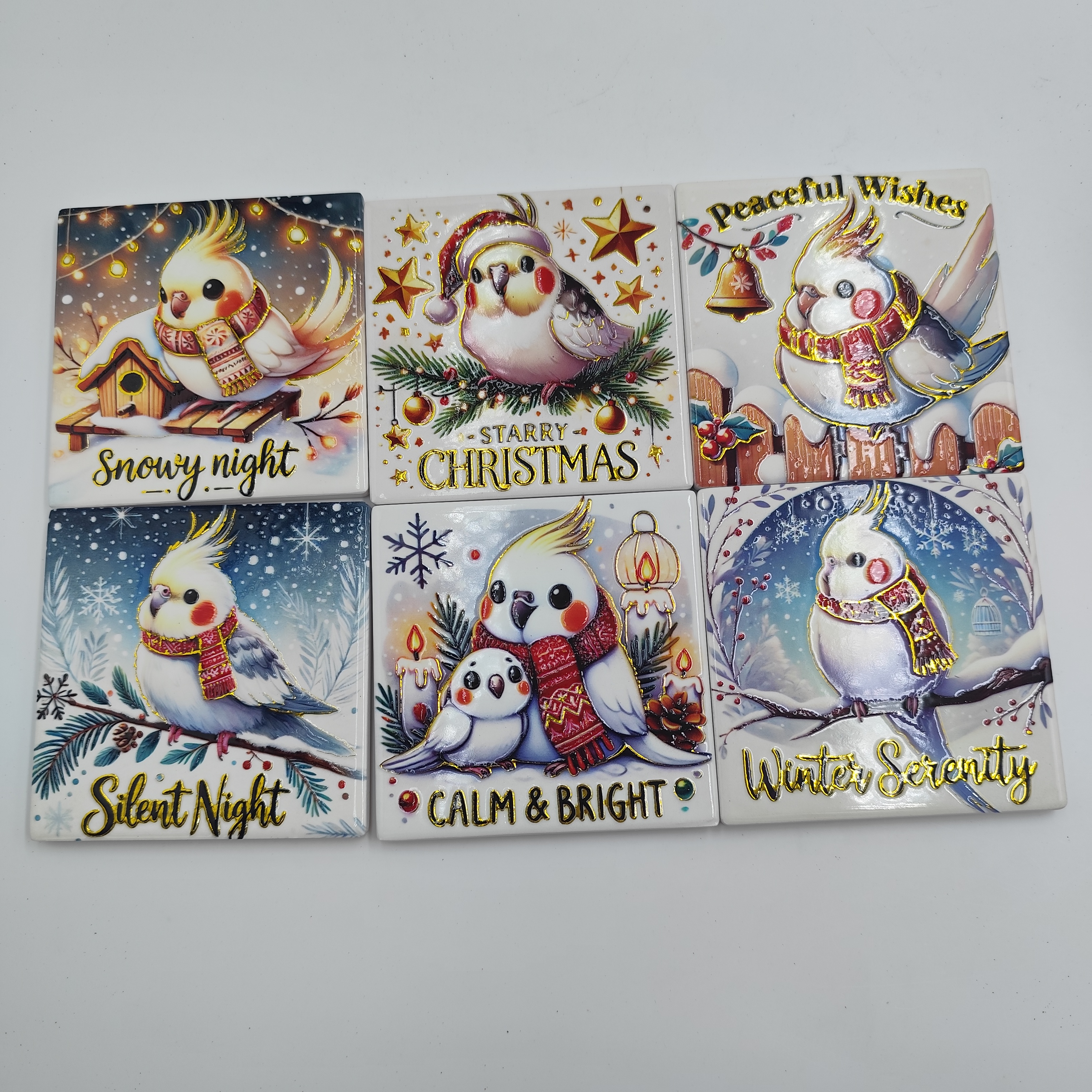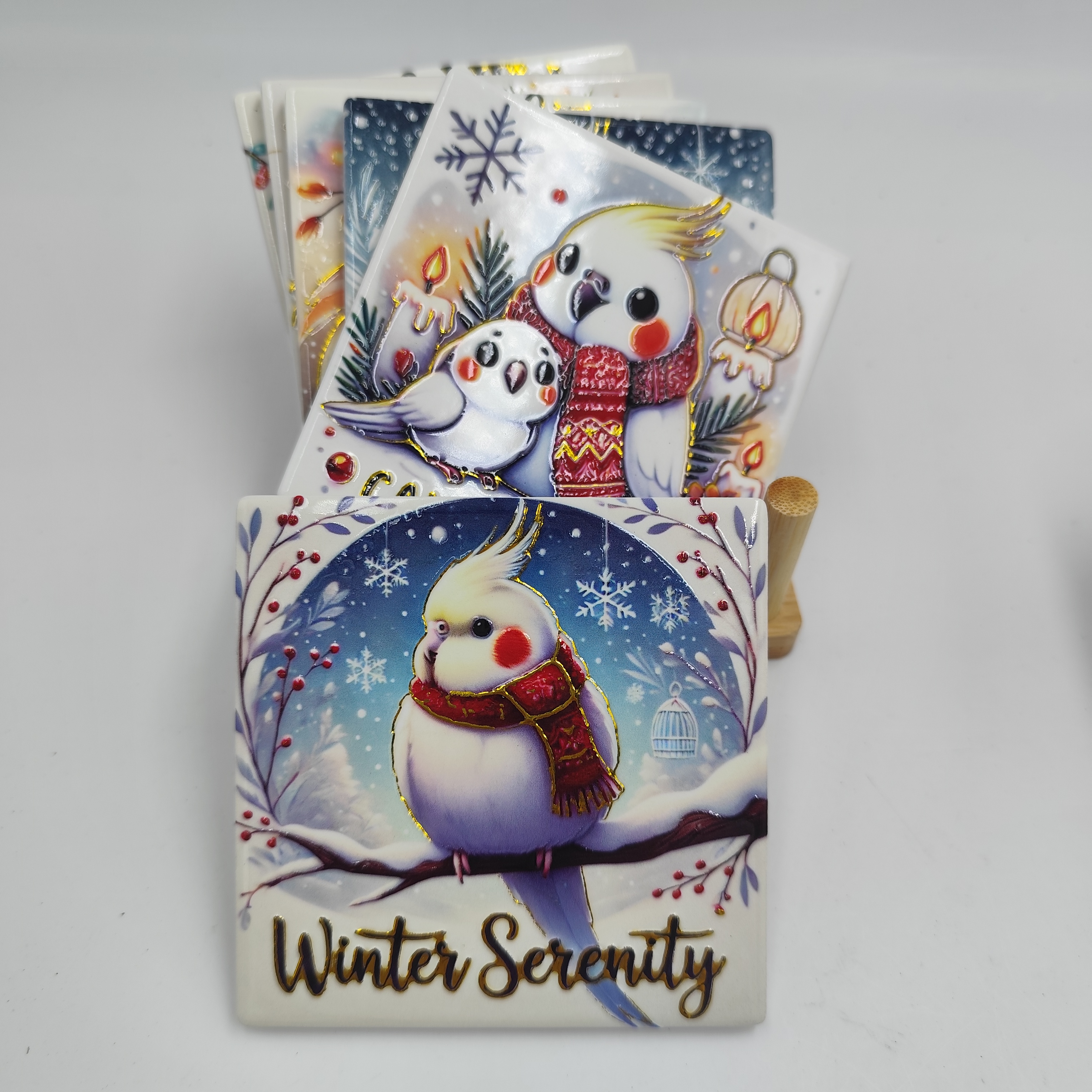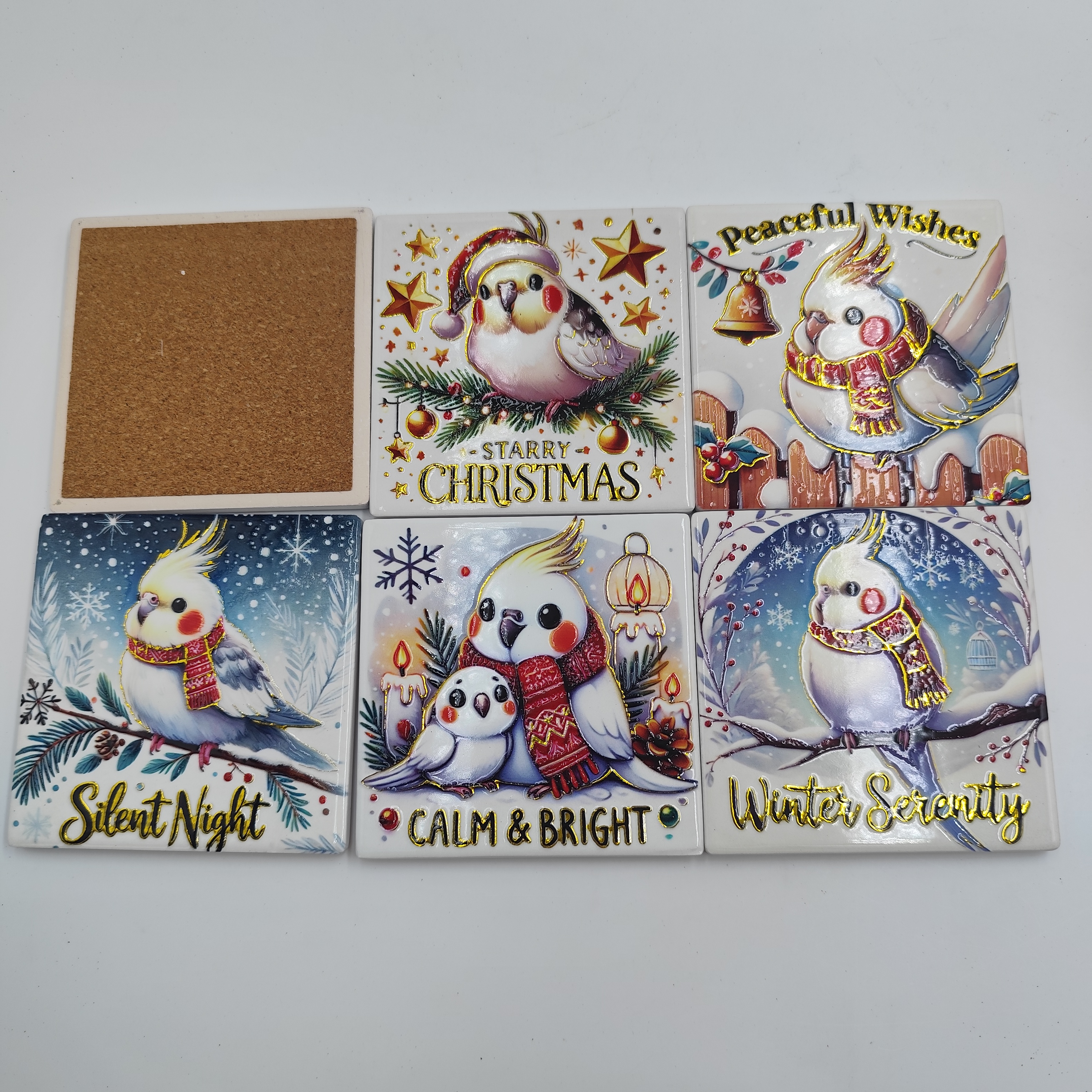 Custom Printing Logo Bulk Creative DIY Design Square Bird Plain Blank Sublimation Cup Cork Ceramic Coaster for Sublimation