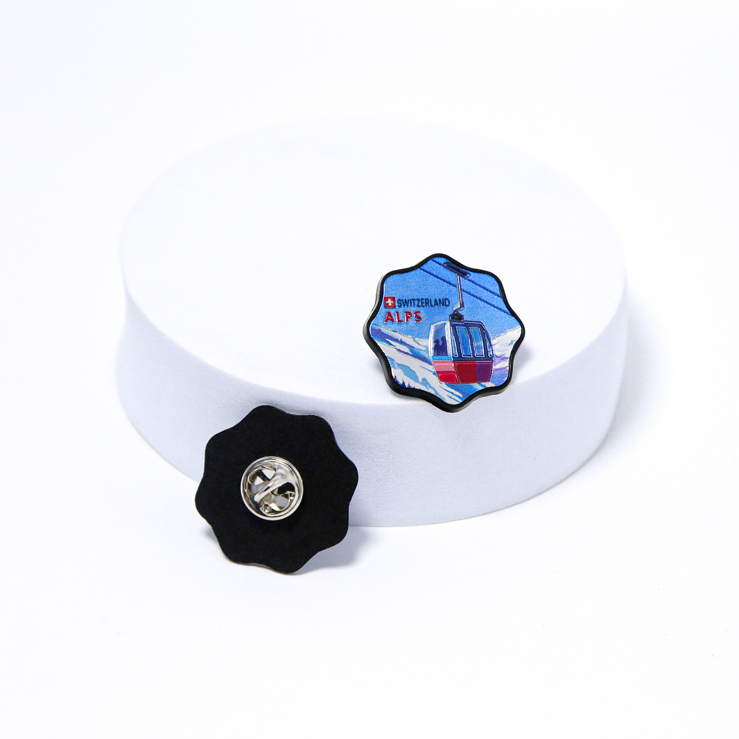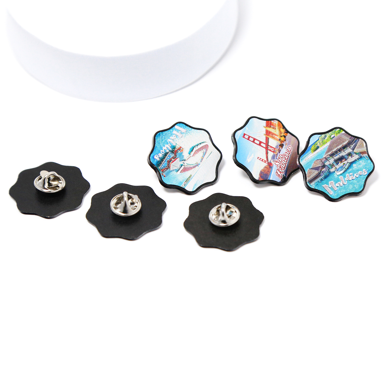Custom Round Logo Pin Silver Foil Sticker Metal Soft Enamel Tourist Attraction Lapel Pin