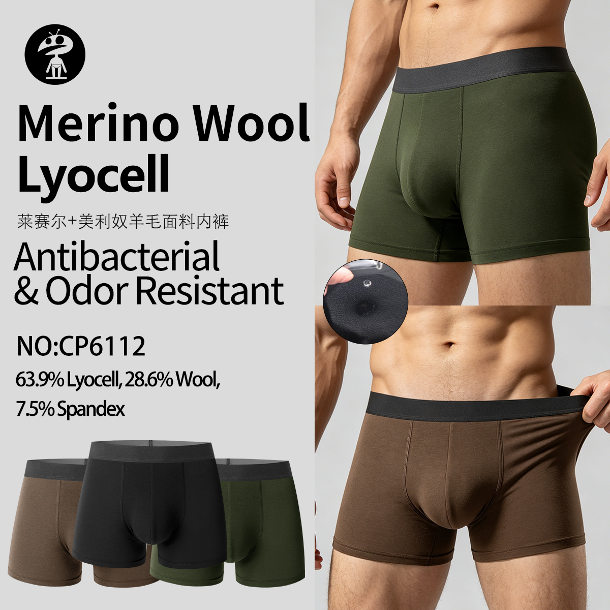 Customized LOGO Merino Wool Men Underwear