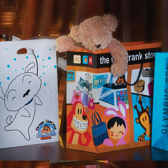 The customized paper bag features stiff and durable construction. It exhibits well-printed imagery and text. The bag keeps many things in place while impressing clients.