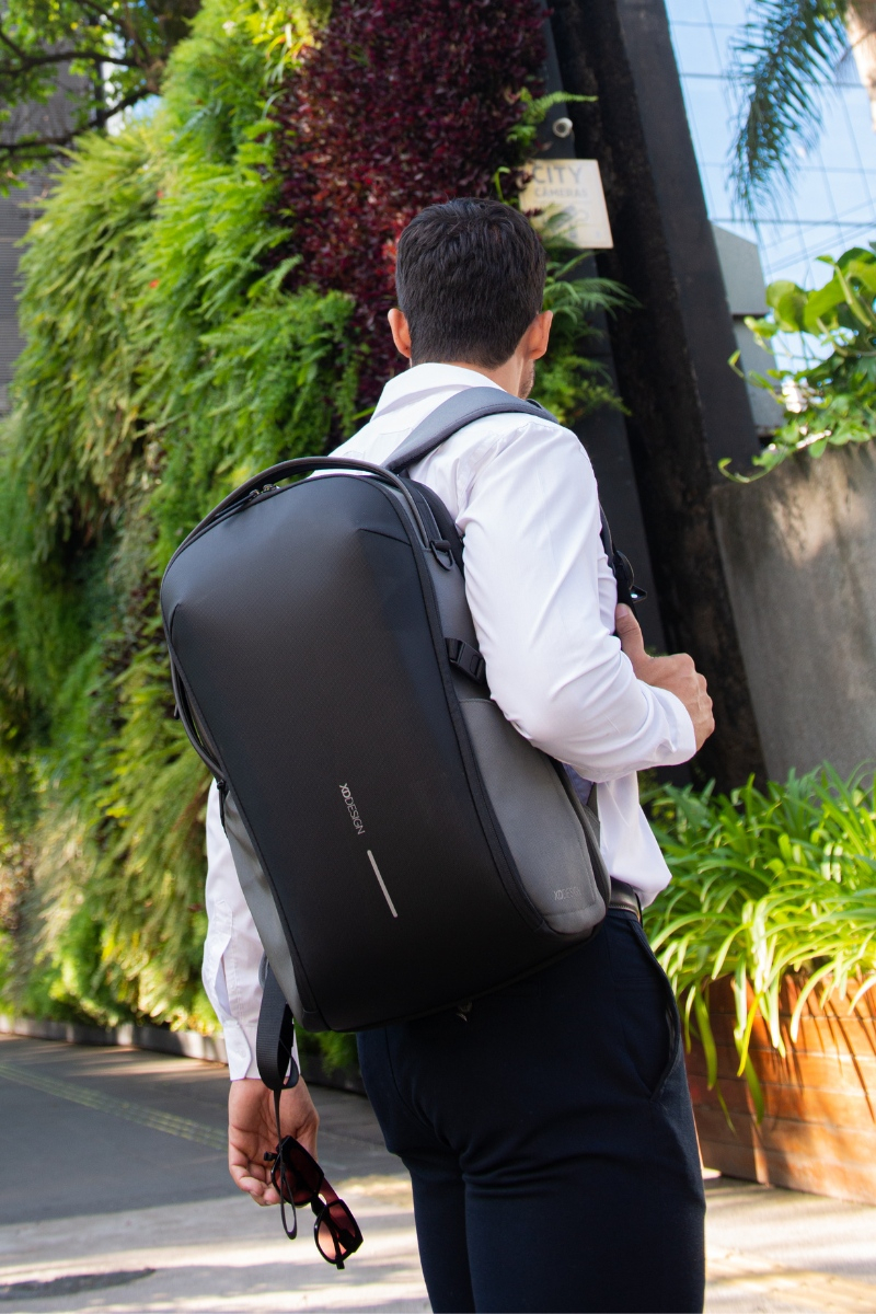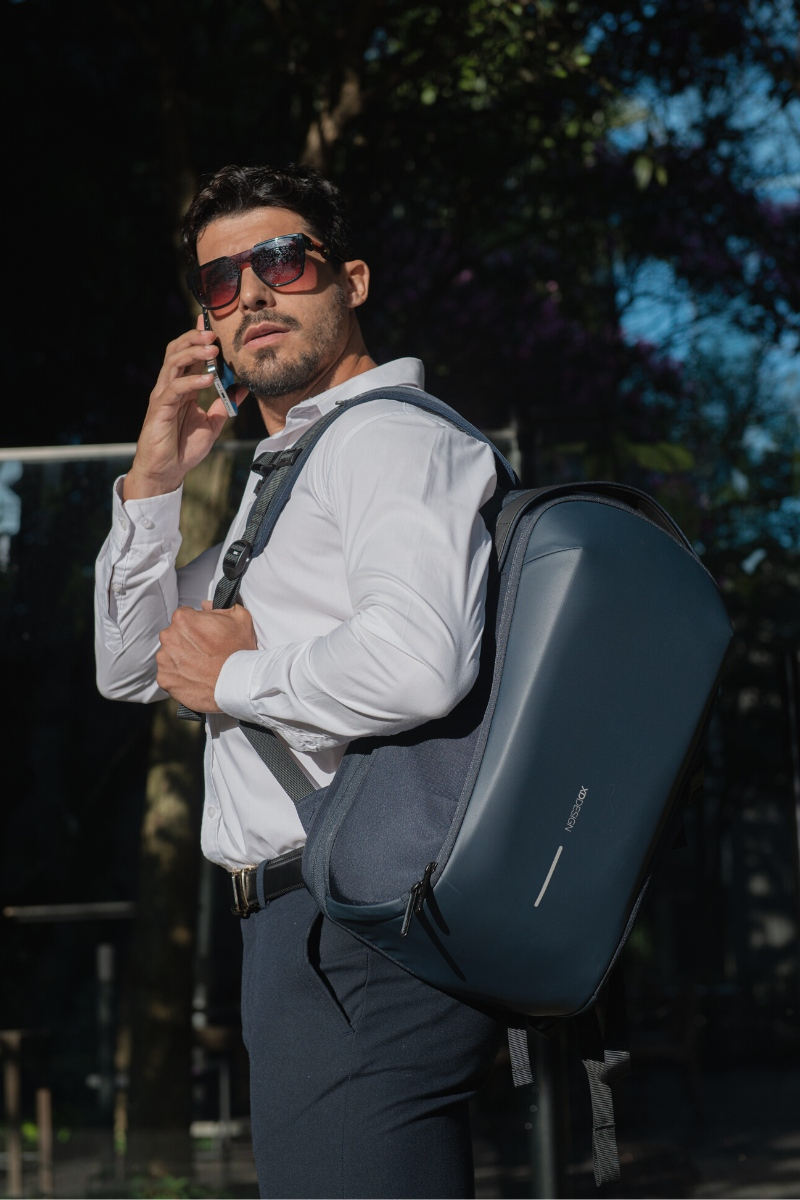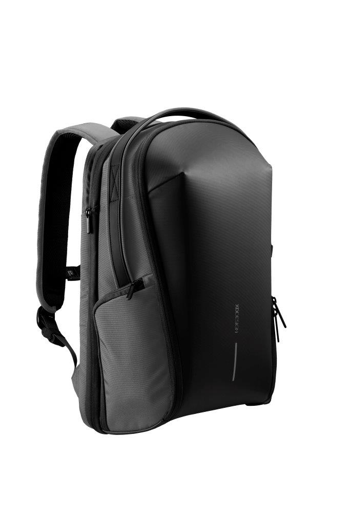 The Bizz Backpack is perfect for daily carry and light travel. The backpack features a 180-degree opening main compartment with an expandable section, internal mesh pockets, an integrated tech pouch and a detachable key leash. The rear pocket is protected with a waterproof zipper and features a padded sleeve for up to a 16” laptop. External easy access pockets are abundant including a high capacity water bottle pocket with a magnetic closure. The backpack is water-resistant and produced with recycled materials. Made from R-pet fabric with the AWARE™ tracer. With AWARE™, the use of genuine recycled fabric is guaranteed. 27% recycled content. Registered design®