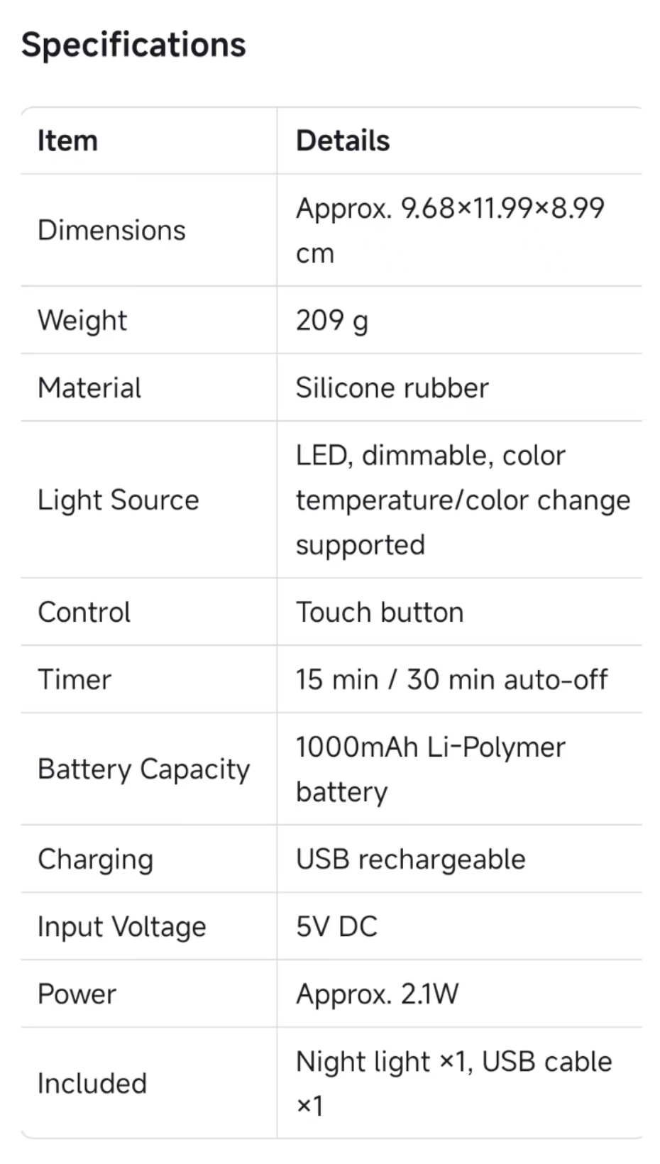· Color-Changing Light: Touch to switch light colors, creating a relaxing ambiance for different moods