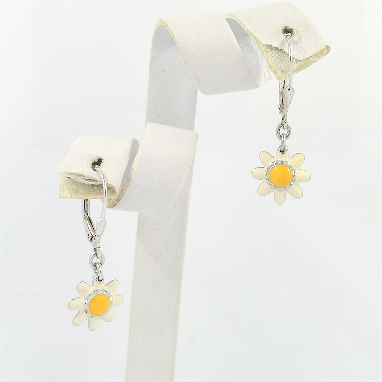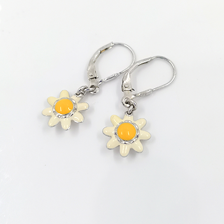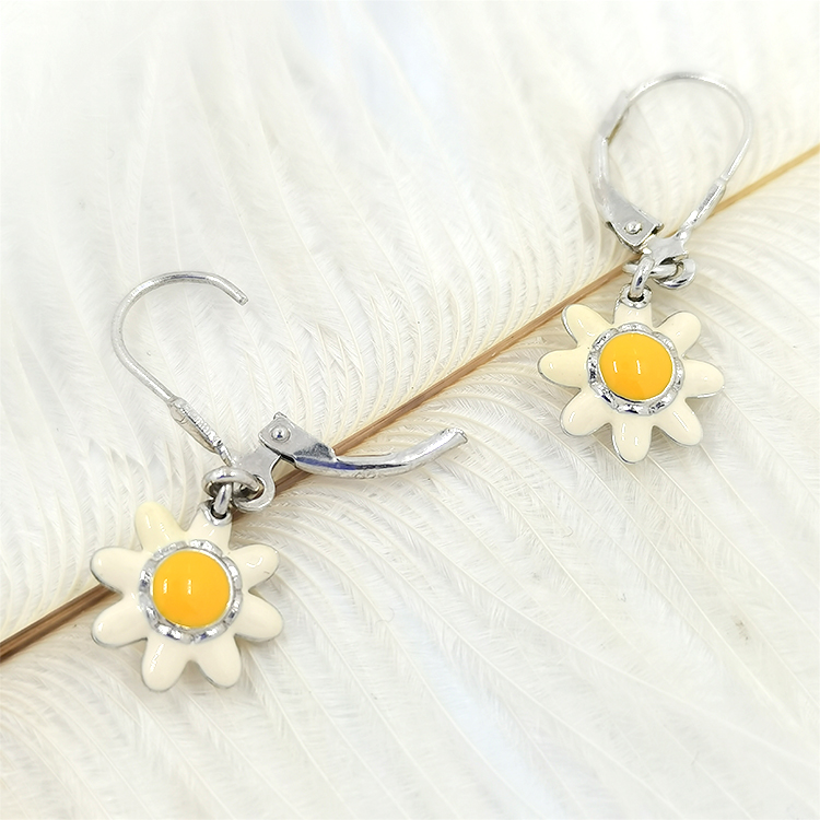 Cute creative hanging custom daisy sterling silver french hooks enamel earrings jewelry