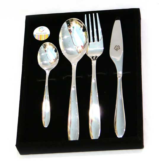 This cutlery set comes with 2 spoons, a fork and a knife. The top-quality stainless steel material is durable and easy to maintain. This cutlery set is an excellent choice for both personal and professional uses.