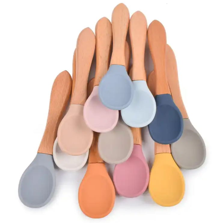 Cutlery-fed silicone wooden baby spoon