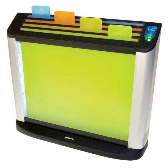 This cutting board system comes with 4 cutting boards with robust housing. The UVC-purifying feature kills up to 99.9% of viruses, germs and bacteria. This cutting board system is easy to use and maintain.