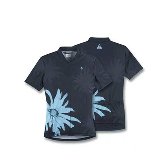 Displayed is high-quality cycling wear that is designed with an attractive print design. This excellent cycling wear is made of polyester material. This simply is the ideal cycling wear for competitions.