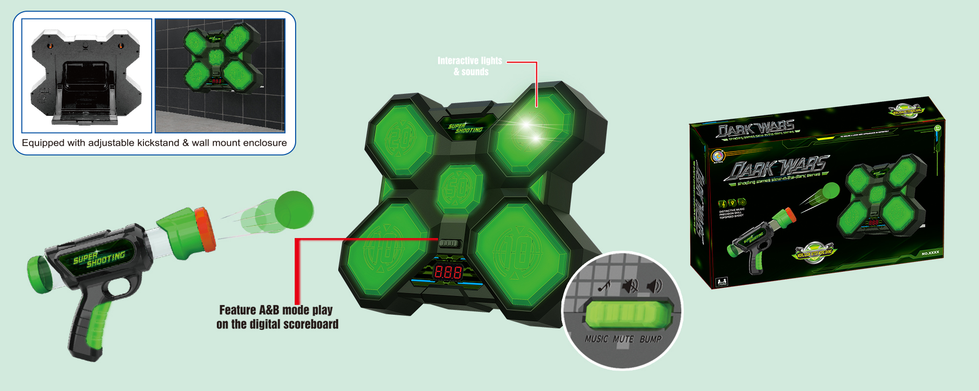| B3233G | DIGITAL TARGET STAND WITH AIR BLASTER (W/ MUSIC/SOUND/COUNTING) | 45.5*28.5*6 | 29.6*22*25 | COLOR BOX | 12 | 0 | / | 0.27 | 28 | 24.5 |