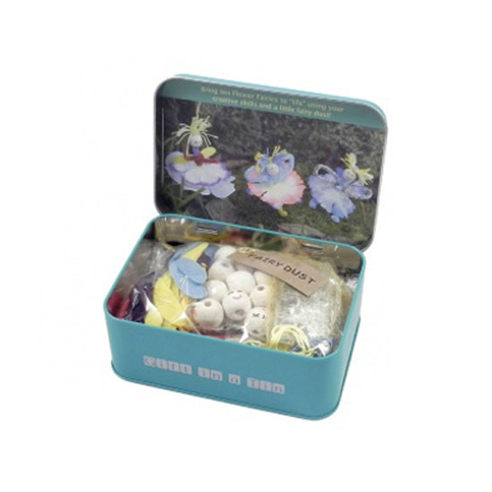 This DIY craft kit lets you create 10 flower fairies with a sprinkle of fairy dust. You can freely employ your creativity and skillful hands in this interesting craft. Packaged inside a beautiful tin box, this kit makes a lovely gift for friends.
