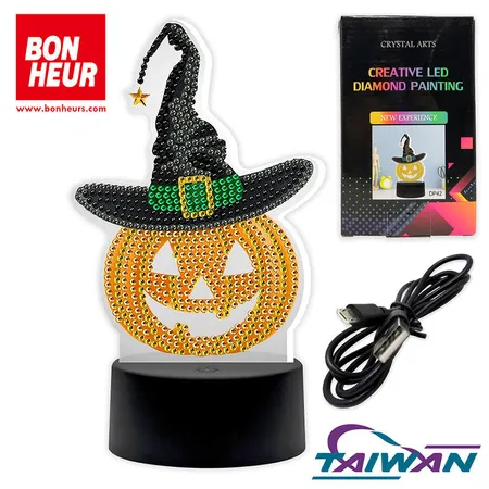 The DIY Pumpkin Night Light diamond painting is the perfect craft project for Halloween enthusiasts. This kit includes everything you need to create a stunning pumpkin-shaped night light that will add a festive touch to any room. Simply follow the easy-to-use instructions and use the included diamond painting tools to place colorful resin diamonds onto the adhesive canvas. Once complete, insert the LED light base into the finished diamond painting and watch as your pumpkin night light illuminates with a warm and inviting glow.