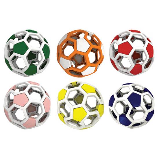This is a plastic soccer composed of 4 frames and 12 puzzles. It can be either used as a playing tool or an educational toy. There are various colours available, such as green, orange, yellow, red, blue and pink.