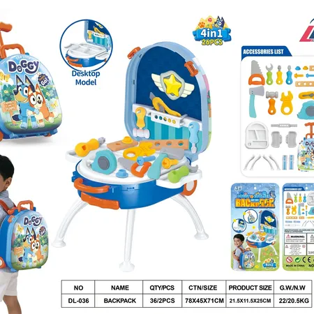 DL-036 4-IN-1 SUITCASE ROLLING LUGGAGE ALLOY BACKPACK SET BLUEY ROLE PLAY KIT