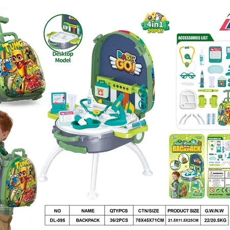 DL-095 SHAN HAI JING 4-IN-1 PULL HANDLE SUITCASE WITH DOCTOR KIT ALLOY BACKPACK SET (DIY EDUCATIONAL ROLE-PLAYING DOCTOR KIT TOY FOR BOYS)