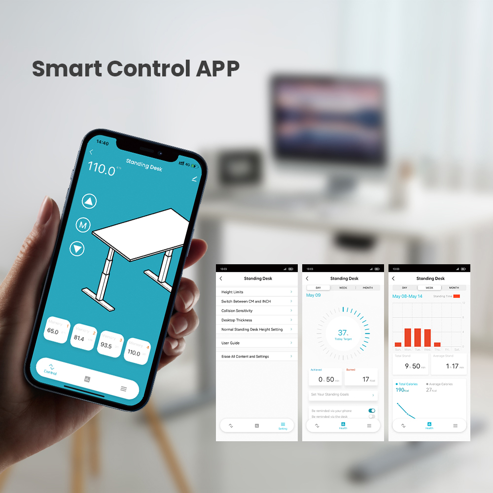 Intelligent control via the free Smart Life APP – controls height adjustments, memory settings and timer reminders while providing the user with statistics that build a healthier lifestyle. Take standing and working to the next level with LUMI’s M06-23DAI intelligent Sit-Stand Desk. Inside each lifting column is an actuator mechanism that provides smooth and stable height adjustments. The programmable digital controller offers advanced memory and timer functions that lead to healthier work habits tailored to the individual. The M06-23DAI incorporates LUMI’s proprietary Gyro-Current collision avoidance system that offers improved sensitivity and detection of under desk objects during height adjustments. Available in popular colors including Slate Black, Tech Grey or Winter White. Step into the smart working market with enhanced operation and customization using the smart control APP for LUMI’s standing desks.
