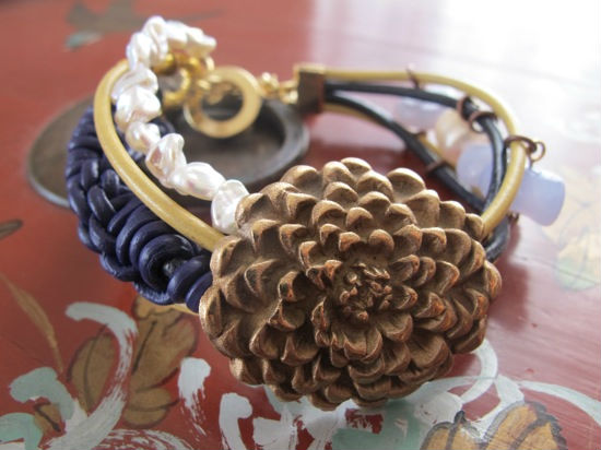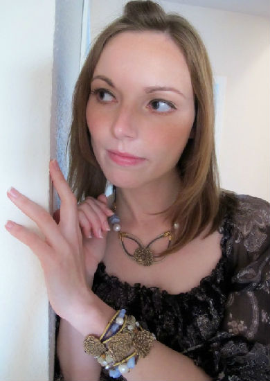 Designer's jewelry, skillfully handmade in bronze, leather, pearl, chalcedony.