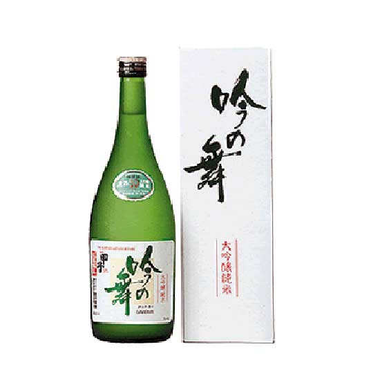 Displayed is a bottle of daiginjo sake that is brewed with pure rice of high quality. With a professional method, this daiginjo sake retains the original fragrance of rice with an added sweet and rich taste. This high quality daiginjo sake is a good choice for gatherings.