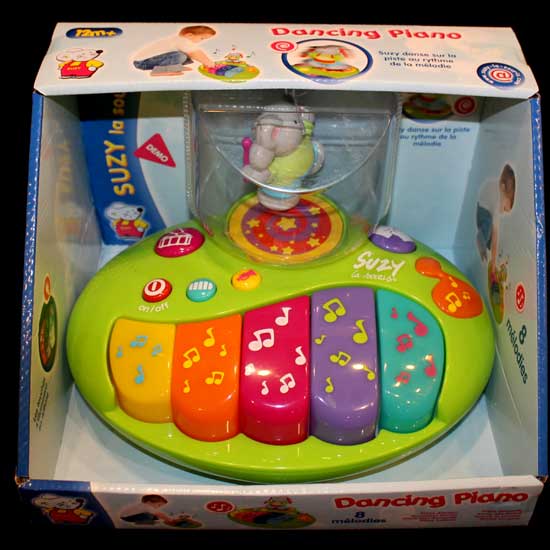 This dancing piano comes with a robust plastic housing for added endurance. The sound and light features help train children’s hand-eye coordination. This dancing piano is operated by 3 AAA batteries.