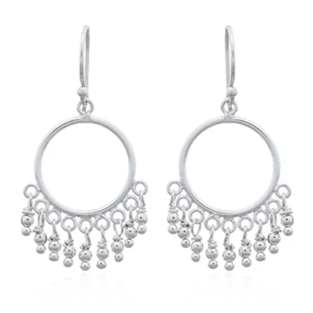 Dangling Beads In Silver Circle Chandelier Earrings