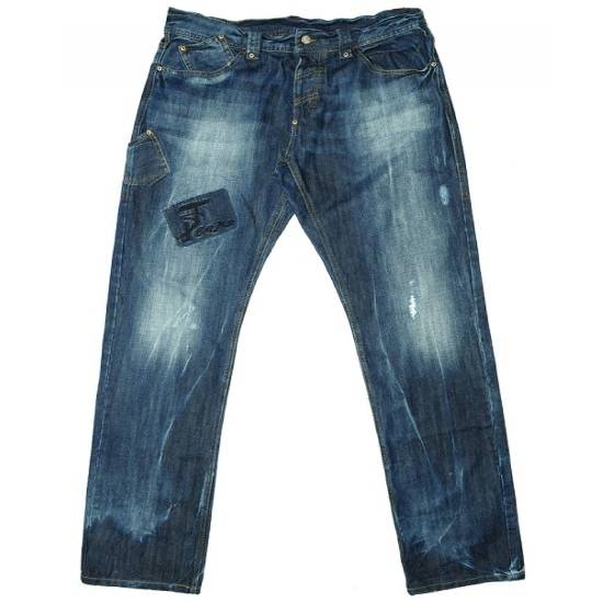 These men's jeans feature dark-blue wash with a straight-leg design. The fading along the front and the deeply washed texture give the jeans a masculine accent. The high-rise jeans are finished with some rips and tears along the leg for a lived-in look.