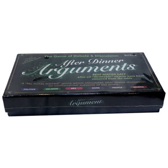 The board game named "After Dinner Arguments" stimulates after-dinner discussion on controversial subjects such as politics, religion, work, people, etc. The player with the best discussion performance will get the longest serving.