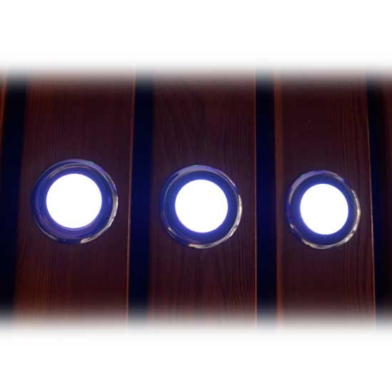 These recessed deck lights are constructed of aluminum and stainless steel housings. The functional deck lights help create a mood by providing subtle ambient lighting. They are also useful as marker lights around the edge of a deck or steps.
