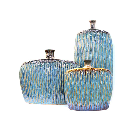 This is a stylish decoration set with three pieces. It is made of quality ceramic for a long service life. This ceramic decoration set is an ideal addition to your modern household.