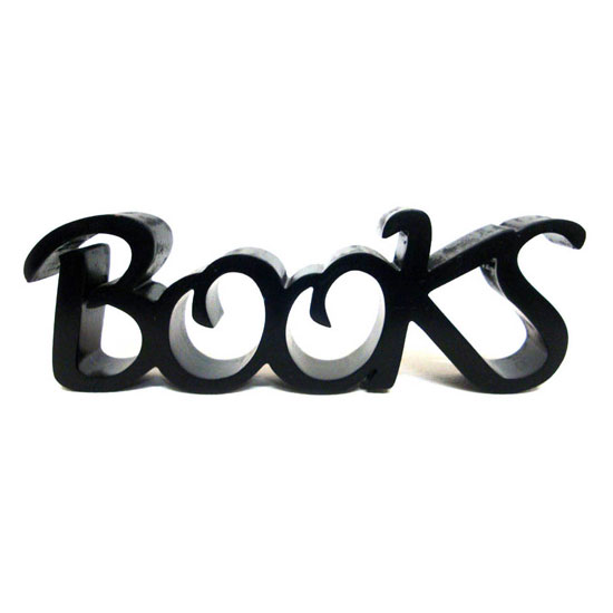 This is a three-dimensional calligraphic sign with the word "books". It is made of fine wood for a rustic flair. This artistic sign is great for homes, reading rooms, libraries, cafes and more.