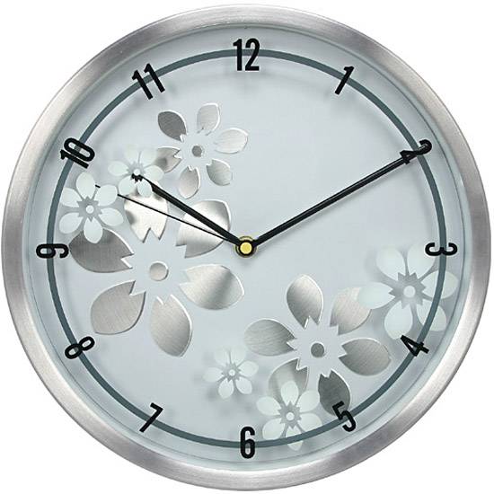 The decent wall clock in a round shape shows a 3-hand design. The bold clean dial is adorned with assorted floral embellishments for a touch of refreshment and elegance. Highlight your home decor and keep on time with a fine wall clock