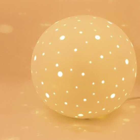 Showcased is a spherical decorative lamp that lends your home a warm and pleasant atmosphere. It features a porous design with little holes that allows light to pass through. This extraordinary decorative lamp appeals to both adults and kids.
