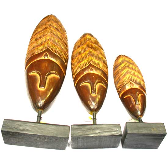 The decorative comes in the unique shape of a masked face. It comes with a stand for easy display. This decorative figure comes in three different sizes.
