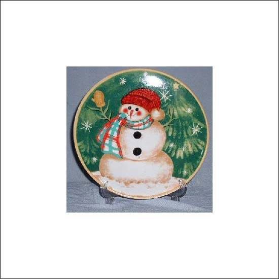 A snowman on the surface of the plate.