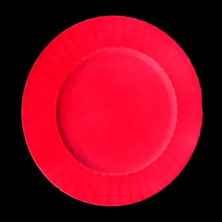 This round-shaped plate is designed as a home decoration. This decorative plate highlights a bright red finish for an attractive style. Add this eye-catching plate to your modern household.