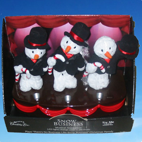 This unique decoration set features three well-dressed plush snowmen on a gorgeous stage. The plush snowmen are meticulously crafted with fine details. Designed with an exquisite gift box, the snowman set makes a great Christmas gift for your beloved ones.