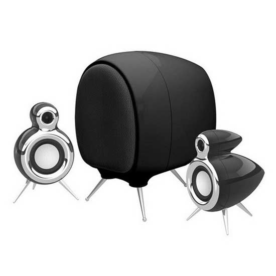 Displayed is a high-quality speaker set that is designed to enhance your digital media enjoyment. This excellent set comes with a subwoofer for excellent bass sound quality. The PP and ABS plastic casings of this speaker set are specifically designed to avoid interference.