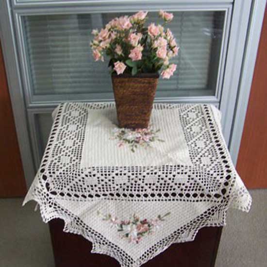 This decorative tablecloth showcases delicate and comely cutouts. It is accented by tasteful floral patterns in pleasing tones. The edges of it also showcase a unique indented design.