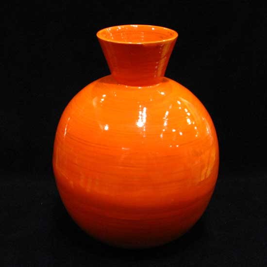 Displayed is a decorative vase that is crafted of bamboo material. This excellent decorative vase features a polished design. This fine vase is as functional as it is unique.
