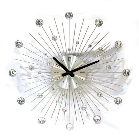 Presented here is a wall clock with detailed craftsmanship. The delicate wall clock is battery-operated. This contemporary wall clock will add a modish accent to your place.