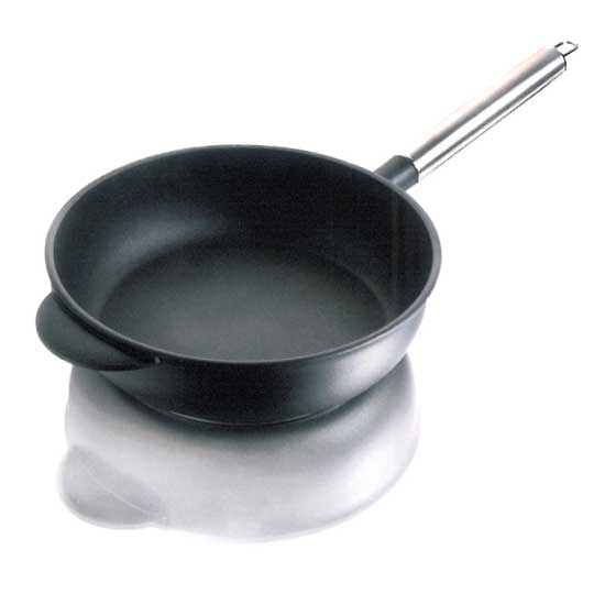 This deep pan flaunts a large cooking area. It features a durable stainless steel handle with heat insulating ability. The non-stick surface saves considerable time in cleaning. Fry tasty dishes with this high-quality pan.