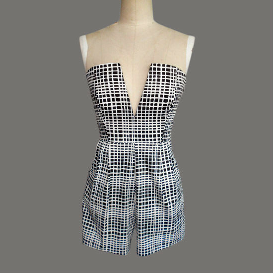Fitted V-neck playsuit, 97% cotton 3% spandex, ykk zipper